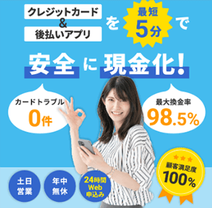 換金率は、相場と比べて2%ほど高め(利用額による)。3万円以上の現金が必要なら、申し込みを検討してみてください。