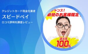 スピードペイは、初回利用者に対して還元率最大100%を提供するクレジットカード現金化業者です。